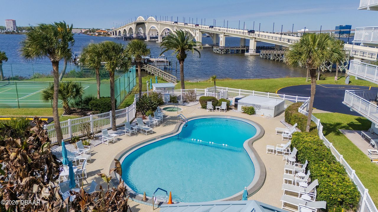 Located in a prime Daytona Beach riverfront location, this fully remodeled condominium boasts one of the few three-bedroom, two-bathroom floor plans in the complex. The updated interior offers an open-concept layout that extends to a wraparound balcony with glimpses of the Intracoastal Waterway. Custom light fixtures, modern ceiling fans, and convenient tile flooring are found throughout the main living area while the chef of the family will love the roomy kitchen featuring granite counters, stainless steel appliances, and ample wood cabinetry. With three full bedrooms there is plenty of room for having friends and family visit, or extra space for an office, craft space, or game room. The community provides a wide range of amenities, including an a heated pool, spa, tennis and pickleball courts, a car wash station, and a cookout area with grills. For water enthusiasts, the facility includes kayak and canoe storage and a community dock that accommodates boats, subject to a waiting list. The grounds also feature a dedicated dog walk area and bicycle parking. The condo is also within walking distance of the Atlantic Ocean beaches, the downtown Daytona shopping and dining district, and the Jackie Robinson Ballpark. Enjoy close proximity to local seasonal events such as NASCAR races and Daytona Bike Week, with Orlando's major theme parks, including Walt Disney World, Universal Studios, and SeaWorld, just an hour or so away. Come see this one today!