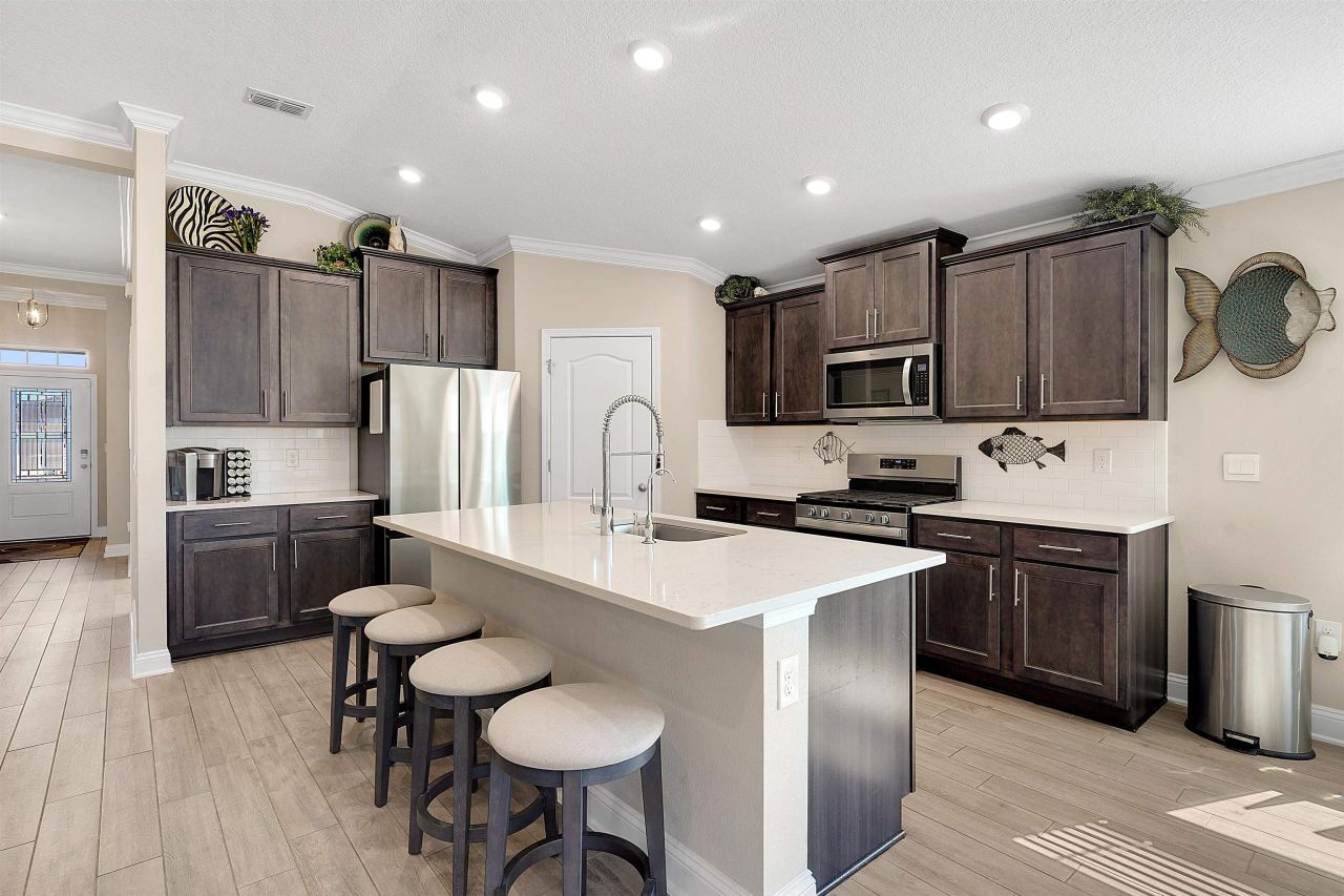 Located in the desirable community of Entrada in historic St. Augustine, this beautifully maintained home offers modern open-concept living and an exceptional list of upgrades. Conveniently situated off State Road 207, the home is just minutes from shopping, dining, historic downtown, and the St. Augustine Premium Outlets, and is zoned for the highly rated St. Johns County School District. The home features over $50,000 in seller improvements, including a whole-house generator, lanai pavers with roll-down screens, custom cabinetry in the office, pantry, exercise room, and garage, upgraded landscaping with palms and irrigation, gutters, additional exterior outlets, enhanced lighting, an ADT security system with Nest doorbell and thermostat, and LG washer and dryer with pedestals. Residents of Entrada enjoy spacious homesites with lake or preserve views and access to new community amenities including a pool, community center, and tot lot coming soon. This home combines thoughtful upgrades, outdoor living enhancements, and a prime location just minutes from the best of St. Augustine. Schedule your private showing today!
