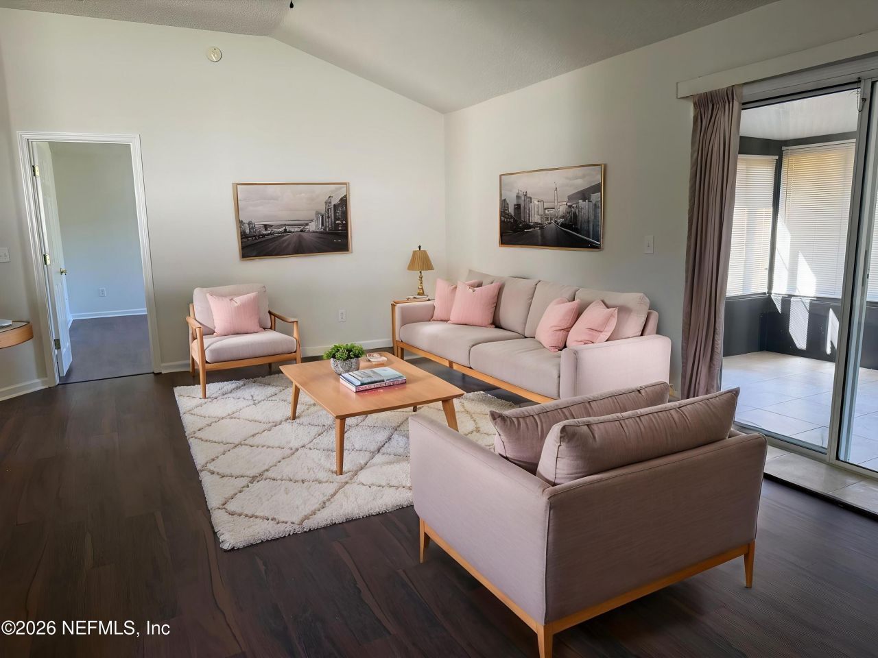 Welcome home! Located in Sheffield Village, this home includes 3 bed/2 full bath + 2 car garage and pond view! Upon entry, you're greeted with tons of natural light coming in through the glass enclosed Florida room. The split floor plan offers privacy to the primary, while still providing a comfortable open layout in the common areas. The kitchen's breakfast bar overlooks the dining/living combo, providing ease for entertaining while still having a quaint eat in space within the kitchen. Laminate and tile flooring sprawl throughout for convenient clean up, no carpet! Both bathrooms have been refreshed with new vanities and include shower tub combos. The primary bedroom is located off of the living space - featuring a spacious walk in closet and dual vanities. Sheffield Village is conveniently located less than 15 min from River City Marketplace & JAX International Airport. Don't miss your chance to see this home today! HVAC 2024.