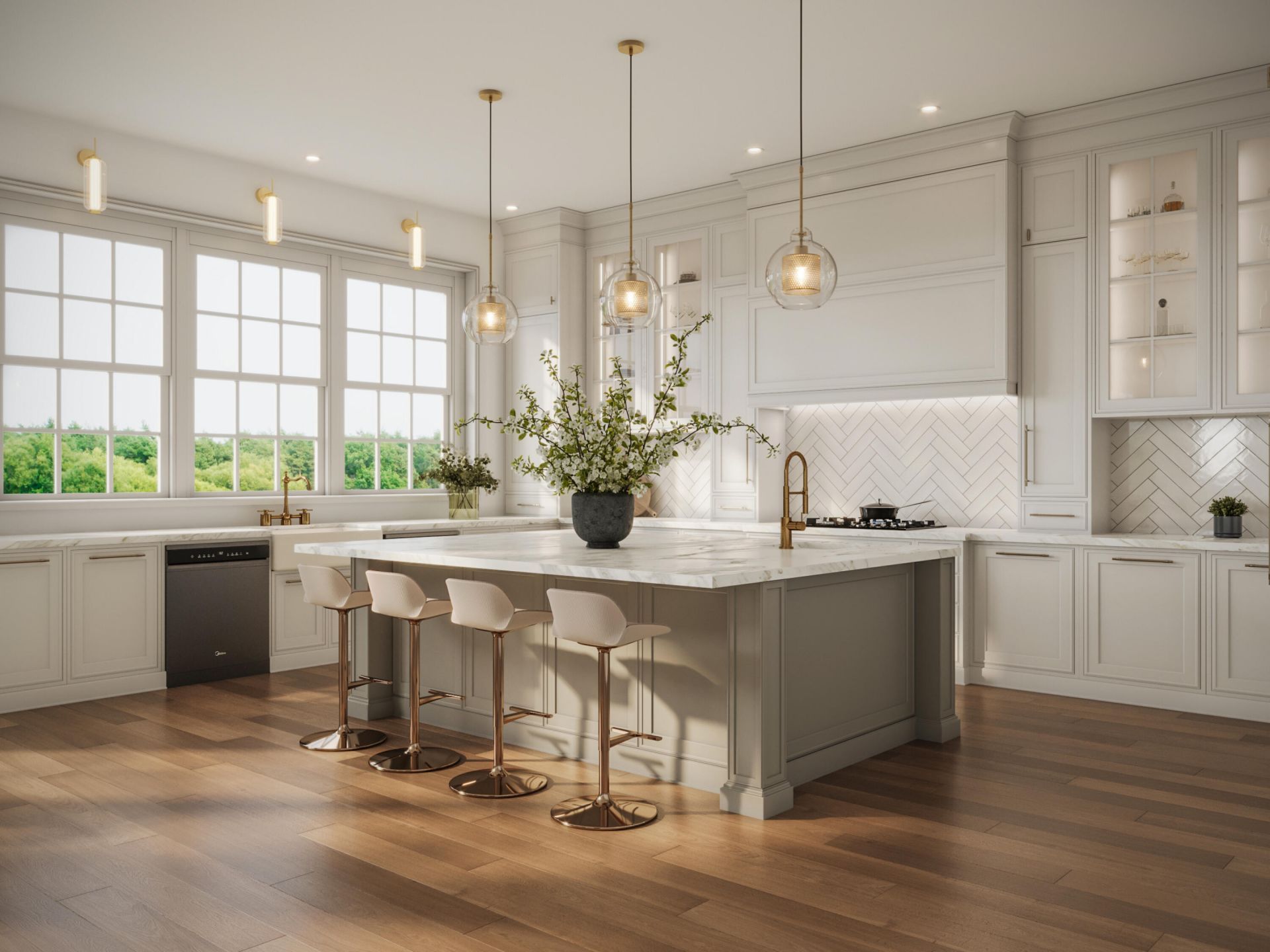 Spanning just under 8000 square feet of living and covered outdoor space, this residence is designed for effortless indoor-outdoor living. Built by Farrell Construction, known for their signature approach to modern, livable luxury, the home blends clean architectural lines with high-quality, thoughtfully selected materials throughout. The main living areas are open, bright, and thoughtfully connected, creating a natural flow throughout the home. The kitchen serves as a true centerpiece, featuring custom wood cabinetry, premium appliances, and an oversized island that anchors the space. Rift cut oak and large-format porcelain are used throughout, layered with imported Italian paints to create a warm, modern palette. Glass railings and expansive openings enhance the home's modern aesthetic, while large glass doors lead directly to the outdoor living areas, making everyday living and entertaining feel seamless. Covered outdoor living is a major highlight, with nearly 2,000 sq ft finished in exterior porcelain tile and designed for year-round use-ideal for dining, lounging, and enjoying the pool setting. Offering 5 bedrooms and 5 bathrooms, the layout provides flexibility for both everyday living and hosting guests. The primary suite is set up as a true retreat with a spacious bath and generous closet space, while bathrooms are finished with ribbed large-format matte porcelain wall tiles and custom shower mosaics for a clean, modern look. Constructed with no VOC materials throughout, supporting a cleaner, healthier indoor environment and reflecting a thoughtful approach to design, wellness, and livability. Located in West Palm Beach's sought-after SoSo neighborhood, the home is just moments from the Intracoastal and Flagler Drive, where waterfront walking and biking paths define the lifestyle. Enjoy quick access to Palm Beach Island, downtown West Palm Beach, area beaches, and Palm Beach International Airport, along with nearby dining, shopping, and top-rated schools. Ongoing neighborhood improvements, including underground utilities and streetscape enhancements, continue to elevate both the look and long-term value of the area. A well-executed home offering scale, design, and location in one of West Palm Beach's most desirable and evolving neighborhoods. Renderings reflect the planned design based on architectural drawings and material specifications; final construction may vary.