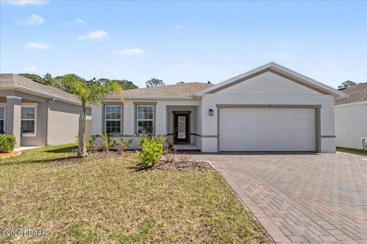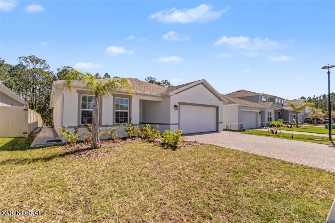 Come see this beautiful home built in 2024. This property features 4 bedrooms and 2 full baths. Nice open floor plan with lots of natural light and 10 ft ceilings. Kitchen is modern with quartz countertops and lots of cabinet space. Primary suite features a large walk-in closet, and bathrooms also feature modern cabinetry with quartz counters. Property is truly turnkey and is better than new with lots of added upgrades including pavers extending around the house. The back yard backs up to a conservation area where you will find a beautifully paved patio which enhances your outdoor enjoyment. This property is a must see. Conveniently located on LPGA Blvd. close to all of the new shopping and restaurants. Possible owner financing is available. Great community amenities that include a 1-mile nature trail walk that surrounds a pristine lake. ALL INFO MEANT TO BE TRUE BUT CANNOT BE GUARANTEED AND MUST BE VERIFIED BY POTENTIAL BUYER.
