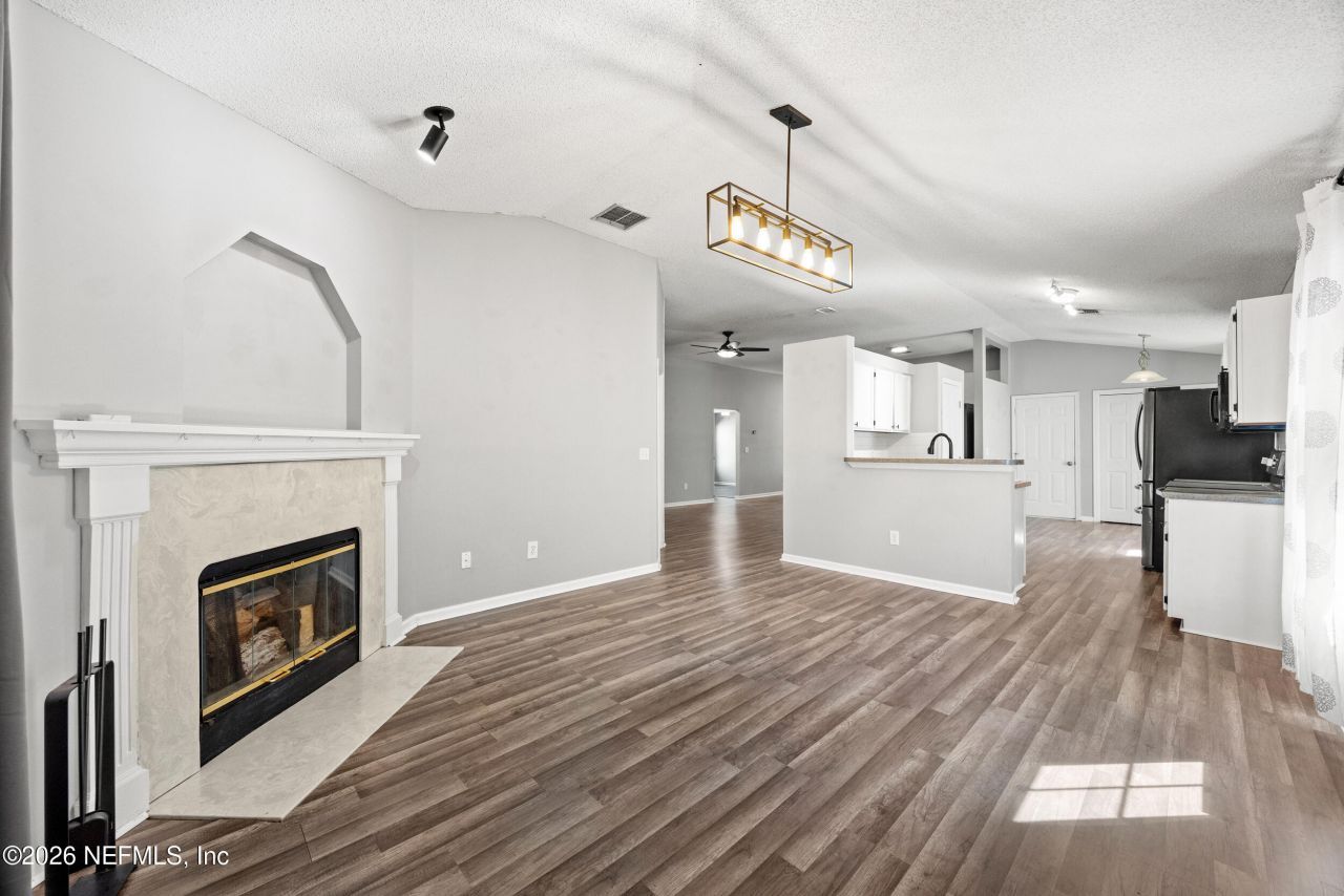 Welcome home-where space, updates, and easy living come together in a turnkey home in a prime location with an assumable 4.25% assumable VA loan. This 4-bedroom, 2-bath home features a spacious main living area designed for both everyday living and entertaining. You'll love the seamless flow between the dining room, eat-in kitchen, living room, and family room-complete with a cozy fireplace.Step outside to your oversized glass-enclosed Florida room and separate paved patio, perfect for enjoying Florida living year-round. The fully fenced backyard offers privacy, and new community-provided vinyl fencing coming soon along the rear property line.Inside, you'll find stylish laminate and vinyl flooring throughout. Both bathrooms have been tastefully updated, and the primary suite is a true retreat featuring a walk-in closet with built-ins, a spa-like bath with dual rain head shower, and a separate soaking tub.Major systems have already been taken care of with a 2021 HVAC, 2022 roof, and 2020 water heater-adding peace of mind for years to come.Located in Riverbend community with a low $299/year HOA, and just minutes from Fleming Island, Black Creek, Doctors Lake, and the St. Johns River-this home checks all the boxes.