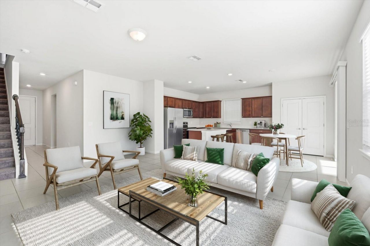 4 BEDROOMS, ONE DOWNSTAIRS, SPACIOUS BACKYARD. This thoughtfully designed residence offers modern comfort, refined finishes, and a layout well-suited for today's lifestyle. From the moment you enter, the spacious Great Room welcomes you with stylish tile flooring and a seamless connection to the kitchen and dining area, creating an inviting atmosphere ideal for both everyday living and entertaining. Natural light enhances the open feel, making the space warm and welcoming.The kitchen is both beautiful and functional, featuring rich wood cabinetry, stone countertops, stainless steel appliances, and a pantry for added storage. A sunlit dining area provides the perfect setting for casual meals or relaxed gatherings, while the open design keeps the heart of the home effortlessly connected.A bedroom and full bath located on the main level offer exceptional flexibility, ideal for hosting guests, accommodating multigenerational living, or creating a private home office.Upstairs, a versatile bonus loft expands the living space and presents endless possibilities as a secondary lounge, media room, playroom, hobby area, or work-from-home retreat. The generously sized Primary Suite serves as a peaceful sanctuary, complete with a private en-suite bath featuring dual sinks, a spacious walk-in shower, and an expansive walk-in closet. Additional bedrooms are well-proportioned and thoughtfully arranged to provide comfort and privacy.Outdoors, a well-sized yard and covered lanai invite you to relax, unwind, and entertain with ease. Whether enjoying quiet mornings or hosting evening gatherings, the outdoor space offers both charm and potential.Situated within a popular community in a desirable Florida location, this home provides convenient access to major highways, shopping, dining, schools, and everyday conveniences. A wonderful opportunity to enjoy elegant living in a setting that truly complements a modern lifestyle.