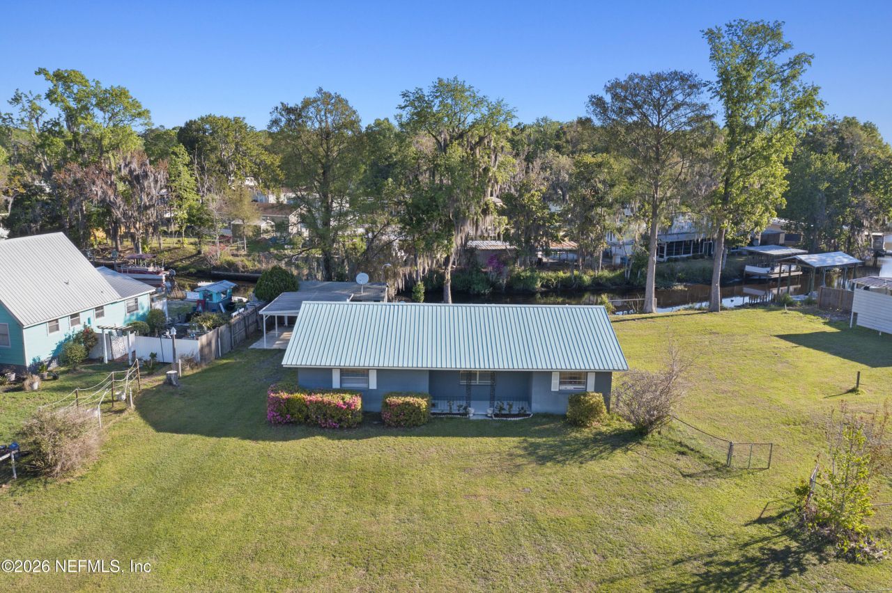 Waterfront opportunity with endless potential! This 2BR/2BA home offers approx. 1,700 sq ft on a rare 0.48-acre double lot, one of the largest on the canal, with direct access to the St. Johns River. Enjoy peaceful surroundings in a quiet neighborhood ideal for boating, fishing, and relaxing right from your backyard. The canal leads to the St. Johns River, which flows north to the Atlantic Ocean. Property features RV parking with canopy, private well and tank system, and septic, keeping utility costs low (owner pays only electricity and internet). Solid concrete block construction with a durable metal roof. Home needs cosmetic TLC including paint, flooring, and kitchen/bath updates, perfect for investors or buyers looking to customize. Spacious yard offers room to expand or store toys. Great value waterfront!