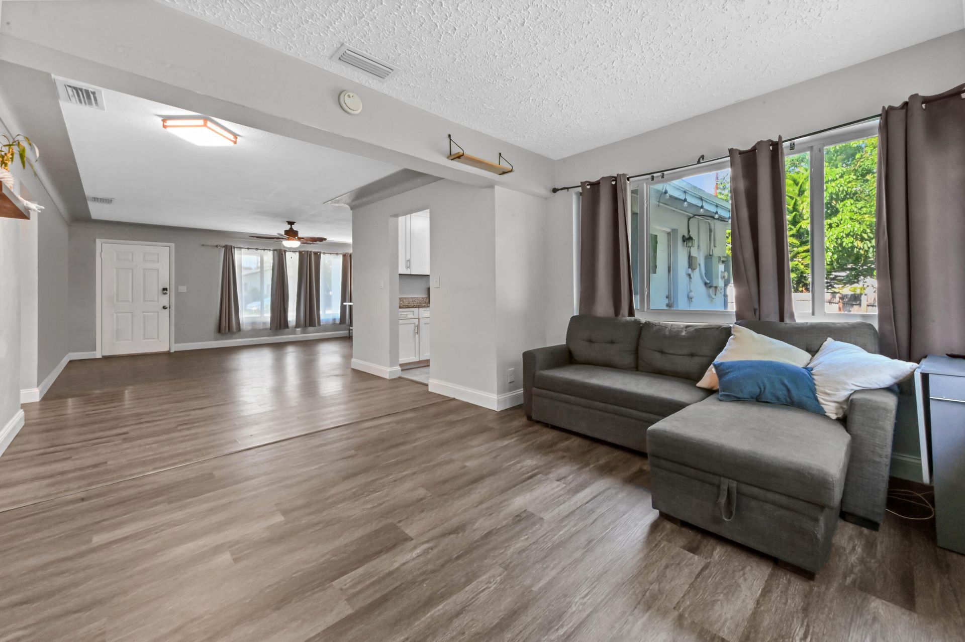 Welcome to your vibrant Florida oasis in sunny Boynton Beach! 2 Bed + Den with ROOF 2019 and impact windows and doors throughout ! Nestled on a spacious corner lot in the quiet, well-established Seacrest Estates, this impeccably maintained residence effortlessly blends modern style with absolute peace of mind. Step inside to discover a bright, open floor plan showcasing a stunning kitchen complete with appliances, upgraded bathrooms, and beautiful flooring throughout. The spacious primary suite features a generous walk-in closet, while a highly versatile extra room offers the perfect space for a home office, den, or a comfortable third bedroom. Outside, the perks continue with an expansive, fully fenced yard fand endless outdoor possibilities. With absolutely no HOA restrictions, you have the ultimate freedom to park your boat or RV, or even design your own custom pool to complete this backyard retreat. Location is everything, and this home places you just two miles from the pristine beach and only a short drive from the exciting dining and nightlife of downtown Delray Beach. This is a rare opportunity to own a completely move-in-ready home that truly checks all the boxes.
