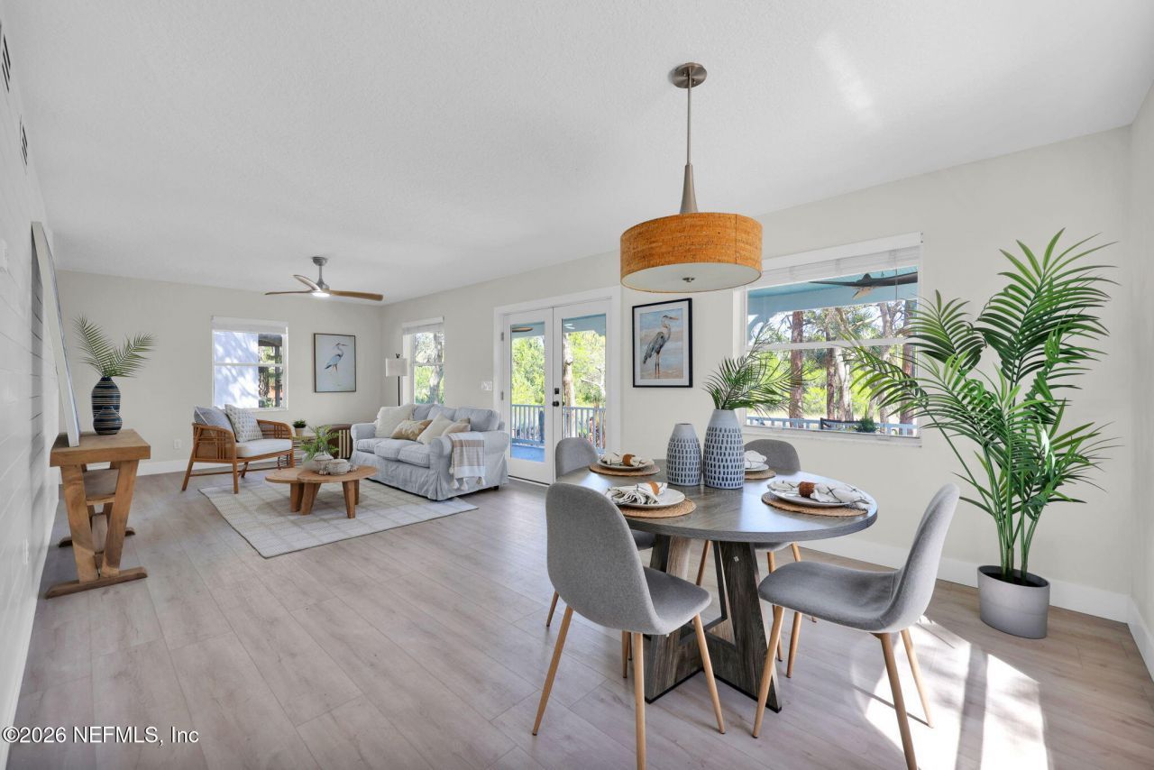 Beautiful marshfront home on the San Sebastian river offers stunning views of natural Florida. Watch the birds from your first floor expansive covered back porch or paved patio where you can relax and unwind. Home has low maintenance landscaping and a beachy, cottage vibe. You'll find ship lap details and ceiling fans, vinyl plank flooring and french doors framing the expansive view of the marsh.This 4 bedroom, 3 bath home also has a covered porch off second floor master bedroom overlooking the marsh, plus a large master bath and spacious walk-in closet, a downstairs guest room/home office. You're just 11 minutes to Vilano Beach, 7 minutes to the Historic District and 10 minutes to the Outlet mall and I-95. No CDD fees in this unique location.