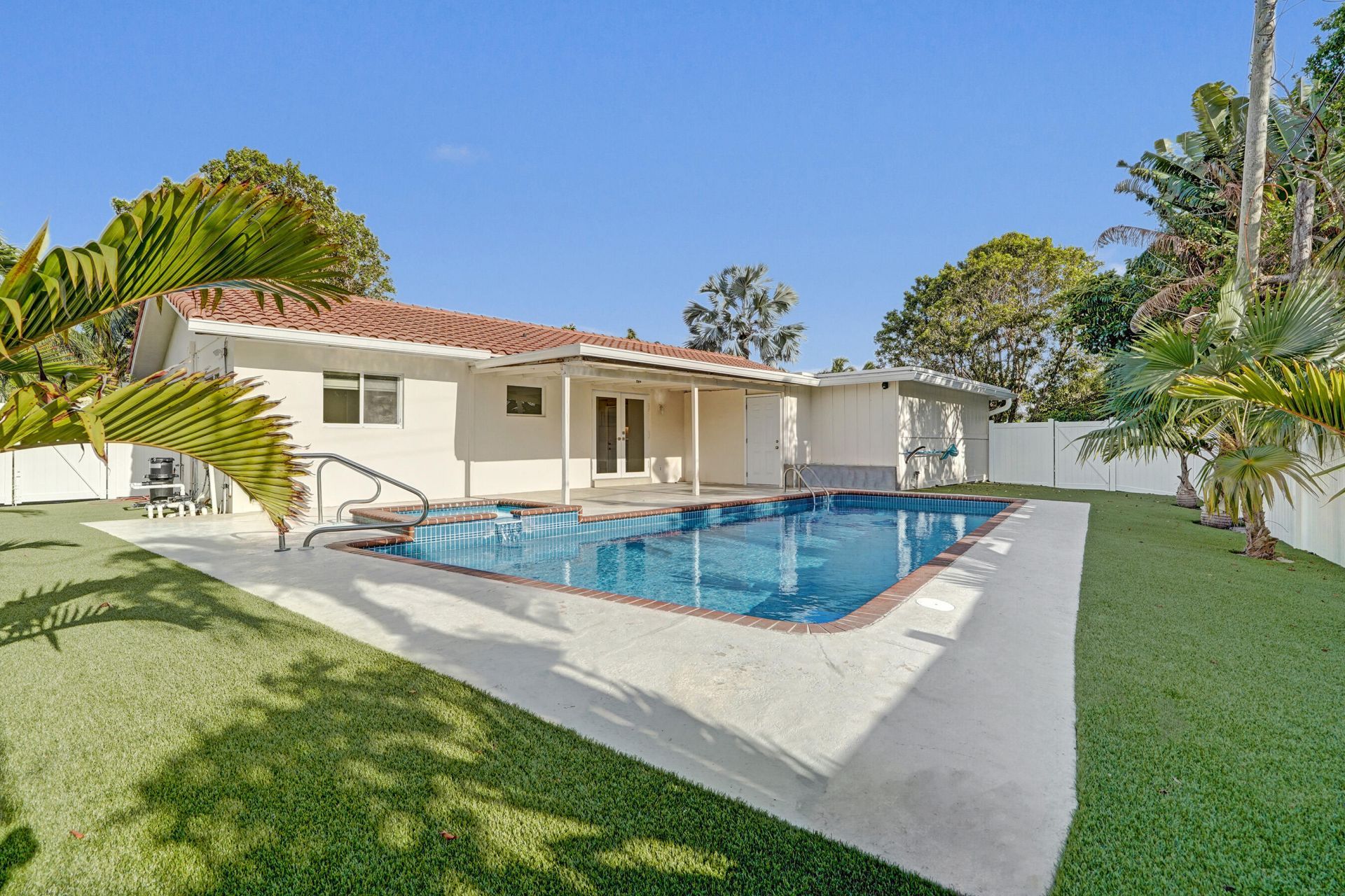 Renovated East Boca corner lot home with no HOA. Ideally located in a prime East Boca location just minutes from the beach, Mizner Park, Town Center, FAU, and Downtown Delray. This 4-bedroom, 2-bath, 1-car attached garage residence features a bright, open layout and modern updates throughout, including custom zebra blinds throughout, new cabinetry in the kitchen and closets, under-cabinet kitchen lighting, and a dual-drawer dishwasher. Enjoy a private pool and spa, professionally installed low-maintenance artificial turf, and a lush landscaped yard with mature fruit trees including avocado and mango. None