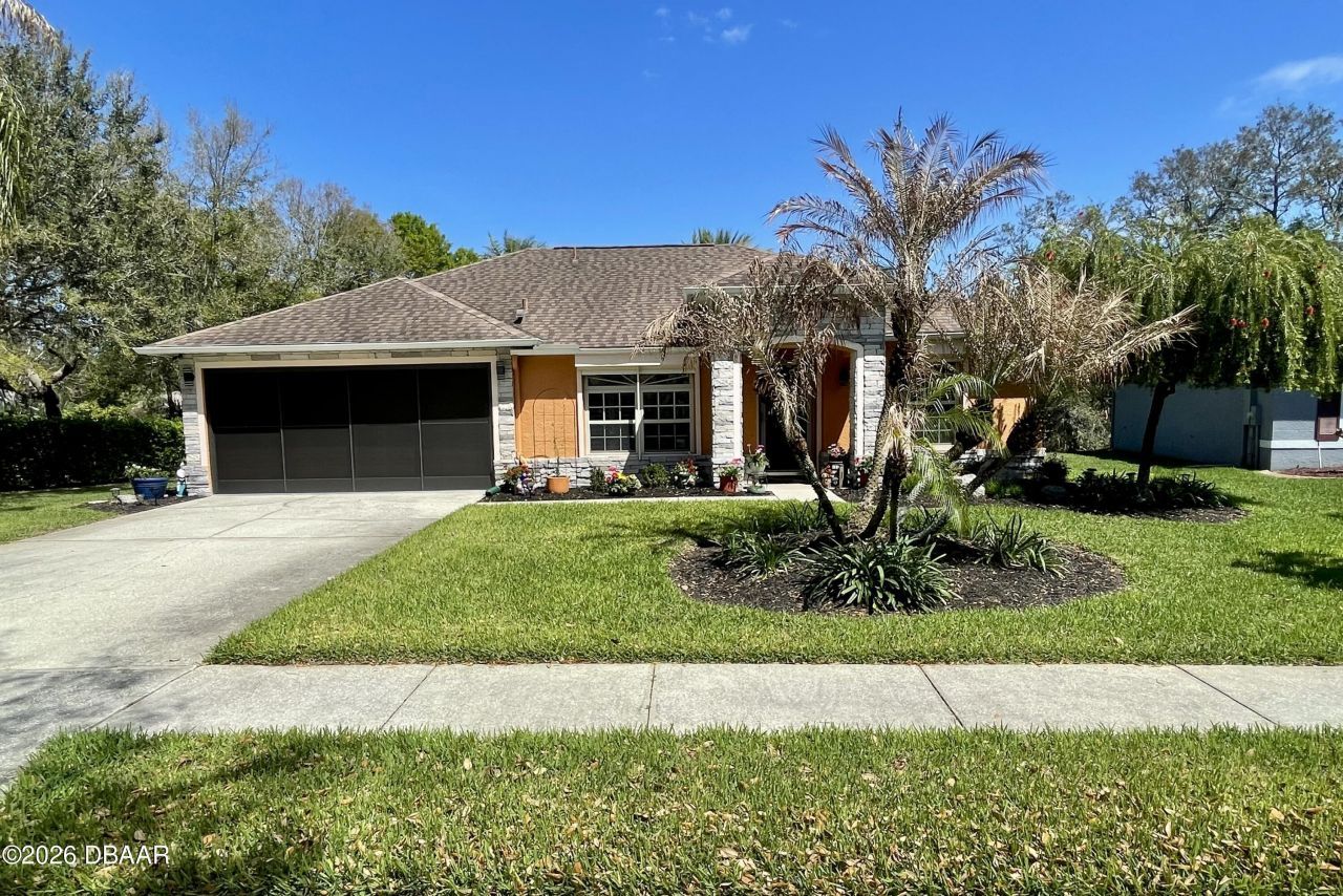 Turnkey 3-Bedroom, 2-Bath Beauty on Corner Lot - Move-In Ready! This immaculate pool home shows pride of ownership. Meticulously maintained, offering the perfect blend of comfort, style, and functionality. Situated on a beautifully landscaped corner lot, the curb appeal sets the stage for what awaits inside. As you step through the front door, you'll immediately notice the soaring cathedral ceilings and the wood plank matte porcelain tile throughout the entire home. That enhances the spacious feel of the open floor plan. The thoughtfully designed split-bedroom floor plan offers privacy between the bedrooms and there are two beautifully updated bathrooms. The neutral color palette throughout makes it easy to add your own personal touch. The renovated kitchen is a showstopper, featuring timeless cabinetry, stone countertops, a breakfast bar and ample workspace for any chef. Featuring top of the line BOSCH appliances. Blackout screened in garage gives another area to enjoy bug free. Walk through your French doors to your outside OASIS! Featuring screened-in pool area with covered seating area for comfort, with fire pit and TV. Enjoy the Salt Water heated pool with cascading water fall for relaxation. Finish your evening with a stroll to your private circular outdoor fire pit area on a perfect evening. Don't forget to rub to Totem Pole for luck! Home shows better in person. You will not be disappointed! LIST OF FEATURES: SALT WATER POOL,PUSH-BUTTON AUTOMATIC HURRICANE SHUTTERS ON ALL WINDOWS, OUTDOOR NIGHT-VISION CLOSED CIRCUIT CAMERAS, ELECTRIC FIREPLACE, FIRE-PIT, INDOOR-OUTDOOR SATELLITE XM RADIO, PLANTATION SHUTTERS ON ALL WINDOWS, SOLAR HEATED POOL, POOL ROBOT, WATERFALL, BLACKOUT GARAGE SCREEN, HURRICANE RESISTANT & ENERGY-SAVING TINTED WINDOWS, EPOXY GARAGE FLOOR. AND ALL THIS IN THE SOUGHT-AFTER SUMMERTREES SOUTH NEIGHBORHOOD. MINUTES AWAY FROM THE WORLD-FAMOUS DAYTONA BEACH, DAYTONA INTERNATIONAL SPEEDWAY, MULTIPLE HOSPITALS, SHOPPING, ENTERTAINMENT, RESTAURANTS AND PARKS. ALL MEASUREMENTS ARE DEEMED ACCURATE BUT MUST BE VERIFIED.