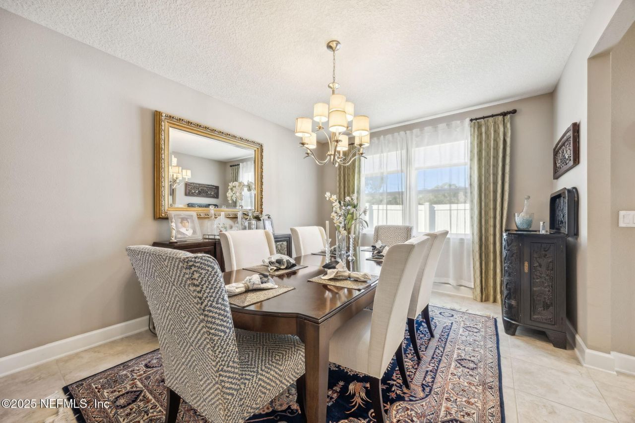 PRIVACY. DESIGN. LOCATION. Welcome to the former model home of Woodland Estates -- an intimate enclave of just 44 homes ideally situated in the Southside corridor between Secret Cove and Secret Woods. Tucked within this private community and surrounded by mature landscaping and charming stone accents, this move-in ready residence blends elegance, functionality, and flexibility for a wide range of lifestyles. Offering 4 spacious bedrooms and 3.5 baths, the thoughtfully designed layout provides exceptional flow for both everyday living and effortless entertaining. The open great room -- complete with ceiling-mounted, hard-wired surround sound -- seamlessly connects to the kitchen and dining areas. Sleek linear tile flooring throughout the main living spaces adds modern sophistication while ensuring easy maintenance. At the heart of the home, the bright designer kitchen features an oversized island, quartz countertops, a glass tile backsplash, and GE Profile stainless steel appliances including double wall ovens. A generous casual dining area with built-in recipe desk offers versatility for gatherings, remote work, or creative projects. The first-floor primary suite serves as a tranquil retreat filled with natural light and complemented by a spa-inspired bath, soaking tub, decorative tile shower, and expansive walk-in closet. Two additional main-level bedrooms share a beautifully appointed dual-vanity bath, while an oversized laundry/mudroom enhances daily convenience. Upstairs, a large bonus room with adjacent full bath provides exceptional flexibility - ideal as a media lounge, guest retreat, home office, or multi-generational suite. Step outside to the covered and screened lanai and extended paver patio overlooking the generously sized, fully fenced backyard. Designed for privacy and recreation, the outdoor space easily accommodates entertaining, pets, play, or a future pool - all while maintaining a peaceful residential setting. Ideally located just minutes from St. Johns Town Center, TinselTowne, I-95, St. Vincent's Hospital, the beaches, and Jacksonville's newly constructed Childrens city park, the home offers outstanding accessibility while preserving the charm of a private neighborhood feel. Built by Richmond American and still within its 10-year structural warranty, with additional systems covered under an AHS home warranty that both convey, this exceptional former model offers both quality and peace of mind.
