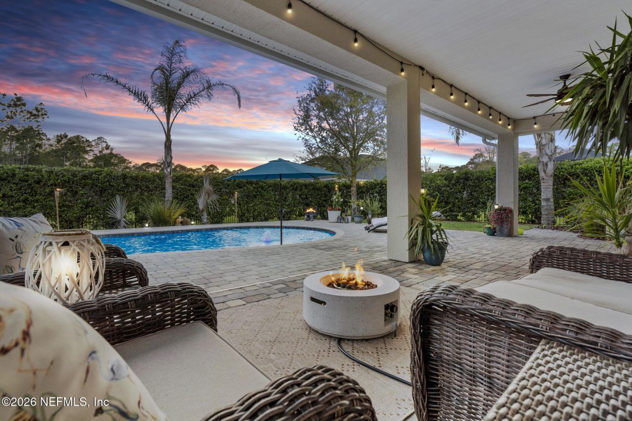 Welcome to 85021 Majestic Walk Blvd, a beautifully designed 5-bedroom, 3-bath home offering over 3,200 square feet of living space in the highly sought-after Amelia Walk community in Fernandina Beach. With a single-story layout, 10-foot ceilings, and a private preserve backdrop, this home offers both space and privacy in one of Nassau County's most desirable neighborhoods.Inside, the open floor plan creates a natural flow between the kitchen, dining, and living areas, making it ideal for both everyday living and entertaining. The kitchen is the heart of the home and features granite countertops, white 42-inch cabinets, a large walk-in pantry, and a spacious island with seating for four or more. Tile flooring runs throughout the main living areas, with carpet in the bedrooms for added comfort.The owner's suite is thoughtfully designed, featuring a large walk-in closet that conveniently connects directly to the laundry room, adding ease to your daily routine. Step outside and you'll find a backyard that feels like your own private Florida retreat. The gas-heated pool and jacuzzi sit on a beautiful paver patio, surrounded by lush palm trees and tall 8-foot privacy hedges that create a peaceful and secluded setting making this your own private paradise. The home backs up to a natural preserve, offering additional privacy and a serene backdrop. In the evenings, low-voltage landscape lighting adds the perfect touch of ambiance for relaxing by the pool or entertaining guests.Additional highlights include a 3-car garage with additional storage racks, a fully fenced backyard, plantation shutters in the living areas, and UV lighting installed in the air handler for improved indoor air quality. New roof in 2023 with complete gutters.Located in the desirable Amelia Walk community, residents enjoy fantastic amenities including a fitness center, community pool, playground, pickleball courts, and tennis courts, all just a short drive from Amelia Island's beaches, shopping, and world-class dining. For those who enjoy golf, you'll also appreciate being just minutes from both Amelia National Golf Club, which recently underwent a major renovation, and the Northampton community course -- both open to the public and easily accessible from the neighborhood.Homes offering this combination of size, privacy, preserve views, and resort-style outdoor living rarely come available. This is one you won't want to miss.